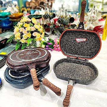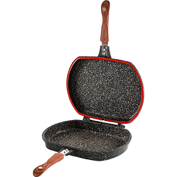 مقلاة شواء مزدوجة ذكية 32 سم من لايف سمايل - 5 طبقات طلاء جرانيت غير لاصق مع مقبض مغناطيسي - مقلاة شواء قابلة للطي